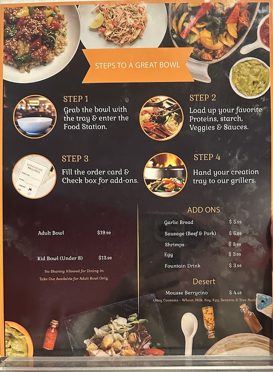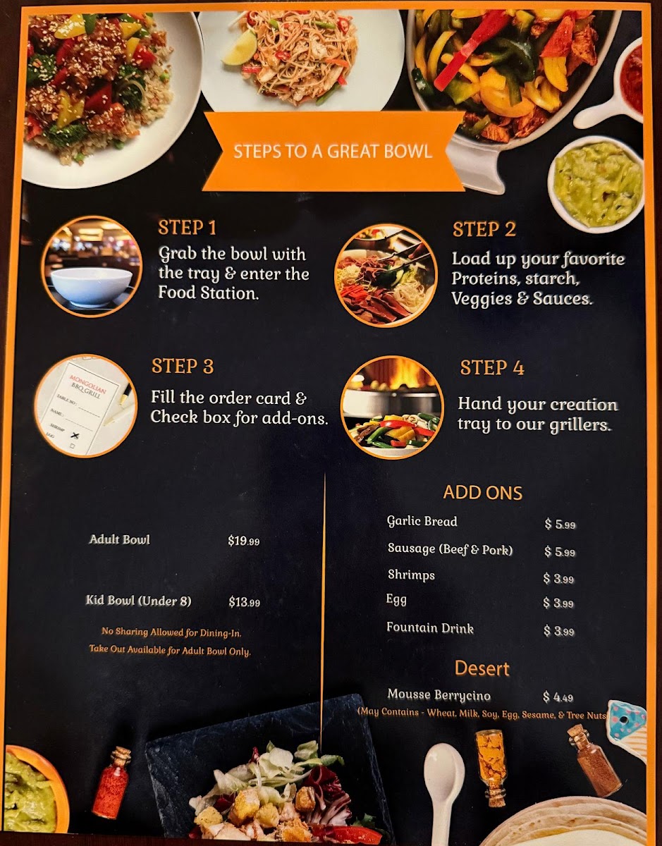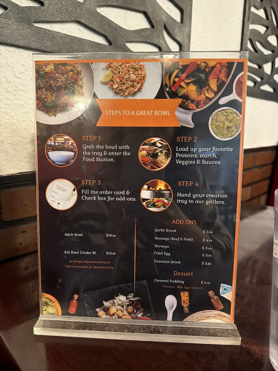 Mongolian BBQ Grill, located at 107 S Lake Powell Blvd in Page, AZ, offers a unique and interactive dining experience that’s perfect for food enthusiasts. Step inside, and you’re greeted with a clean, welcoming atmosphere and a friendly staff eager to assist you in creating your perfect meal. The concept is simple yet exciting: choose from a myriad of fresh ingredients—proteins, vegetables, and noodles—and customize your bowl to your liking.
